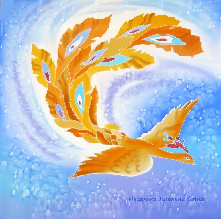 Натуральный шелк (крепдешин) 60-60см, авторская ручная роспись 7000 руб.