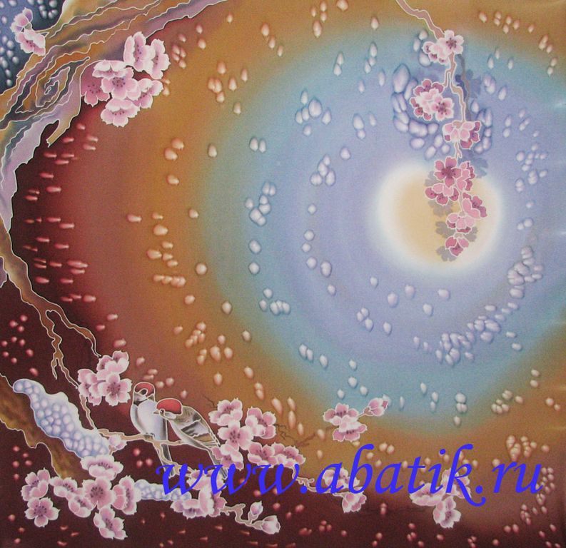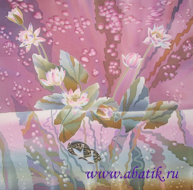 натуральный шелк (крепдешин) 80-80см, авторская ручная роспись