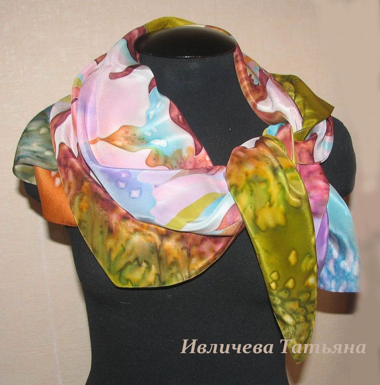 натуральный шелк (крепдешин) 90-90см, авторская ручная роспись. 4800 руб.