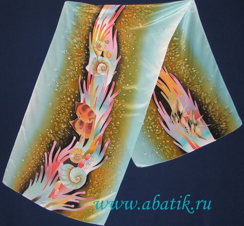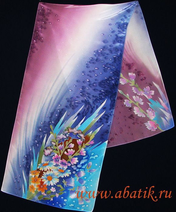 Натуральный шёлк (шифон), 42-165 см, авторская роспись.