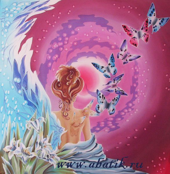 натуральный шелк (крепдешин) 90-90см, авторская ручная роспись