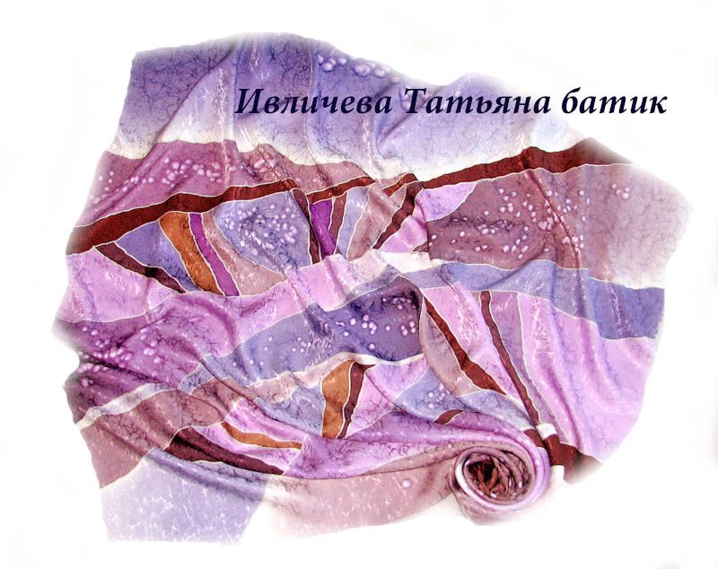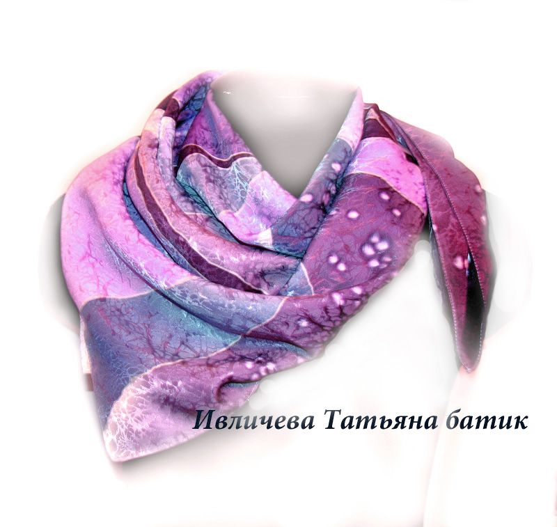 about Tёплый шелковый платок батик "Cиреневая карамель"
