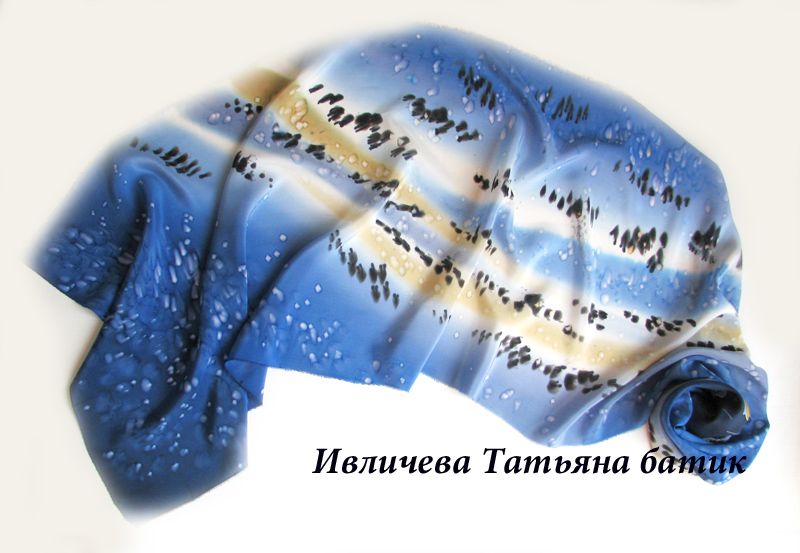 about Шелковый шарф батик "Морской берег"