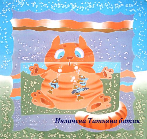натуральный шелк (крепдешин) 68-68 см, авторская ручная роспись.