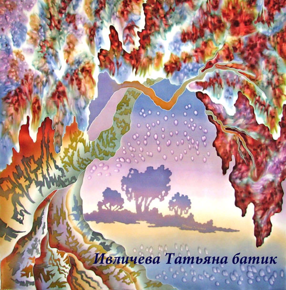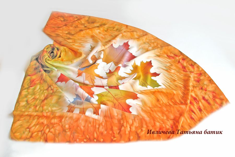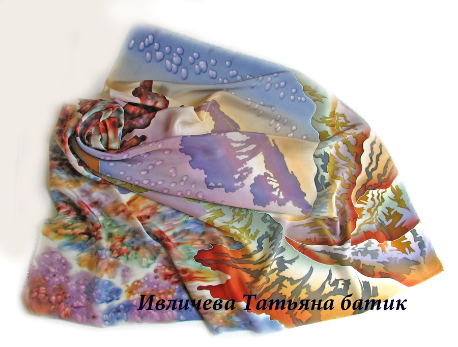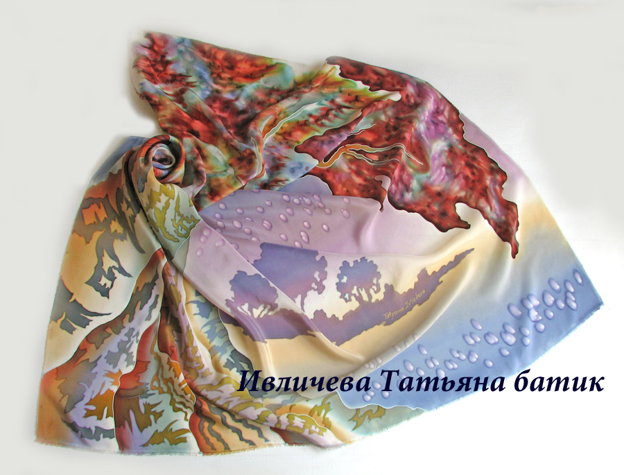 Натуральный шёлк (крепдешин), 40-165 см, авторская роспись.