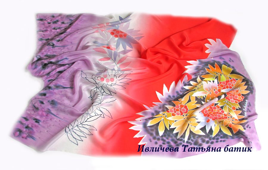 натуральный шелк (шифон) 70-180 см, авторская ручная роспись.