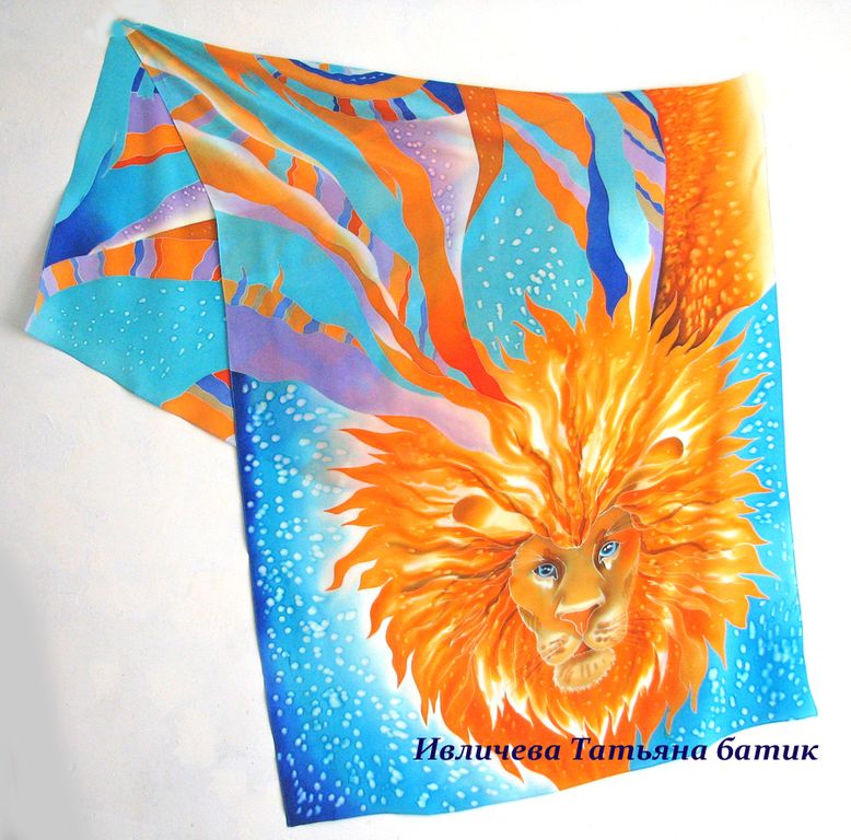 about шелковый палантин батик "Лев"