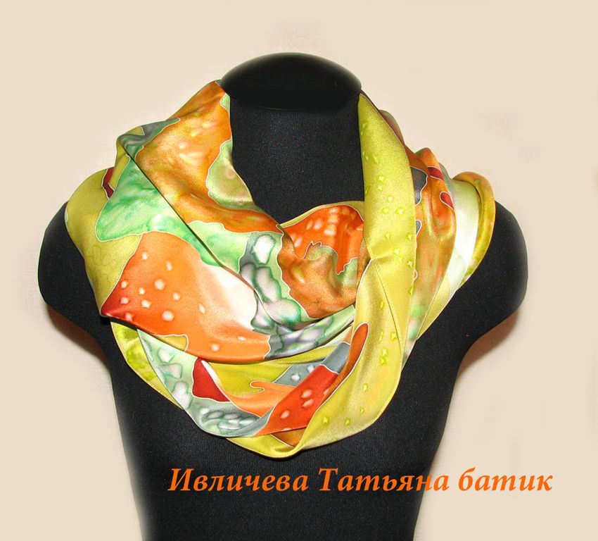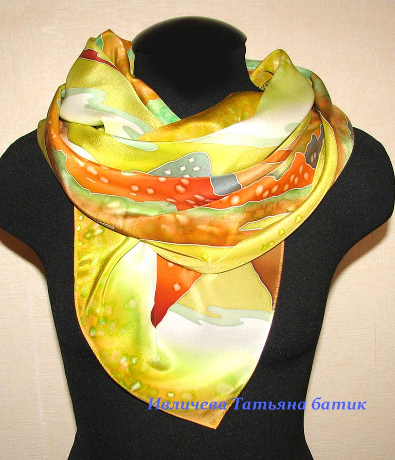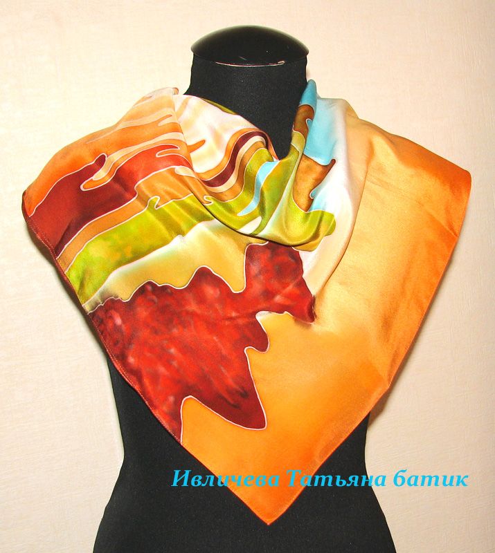 about шелковый шарф батик "Теплая осень."