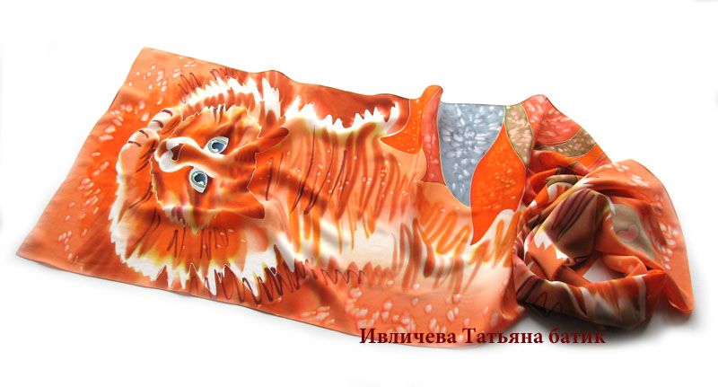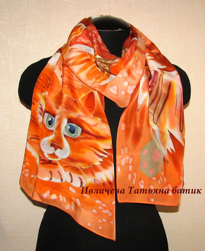 about шелковый шарф батик "Рыжий кот"