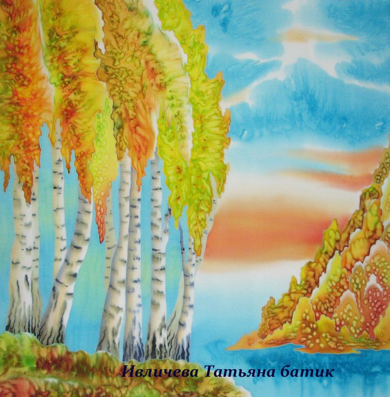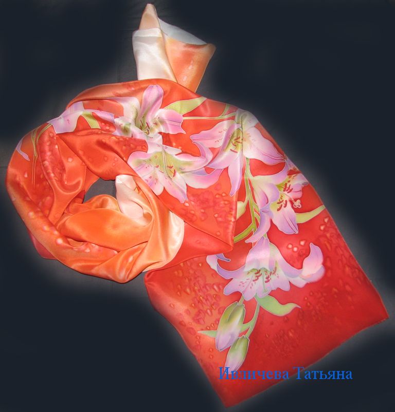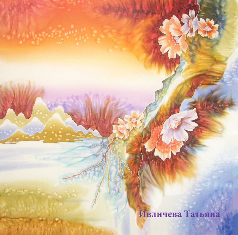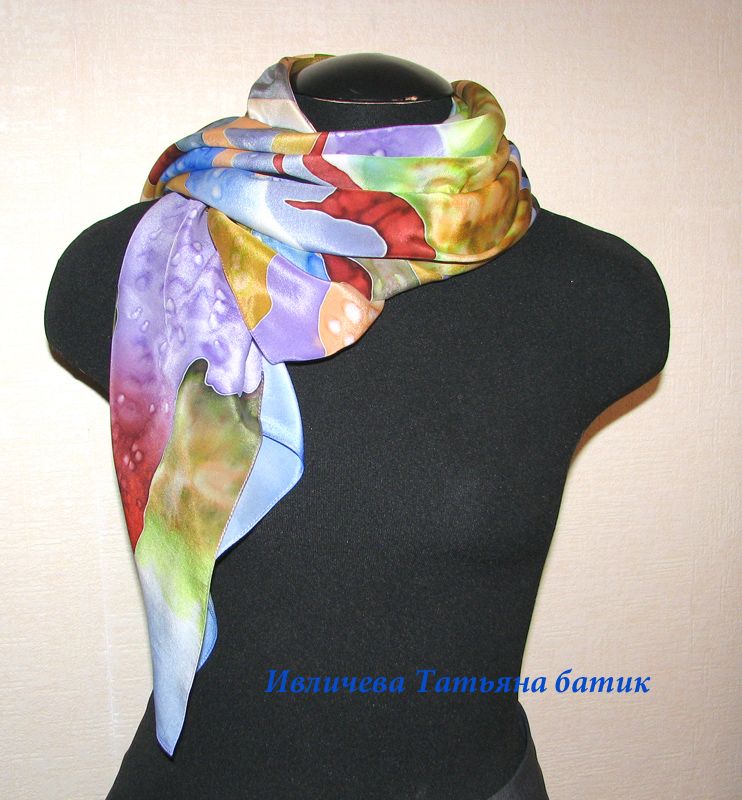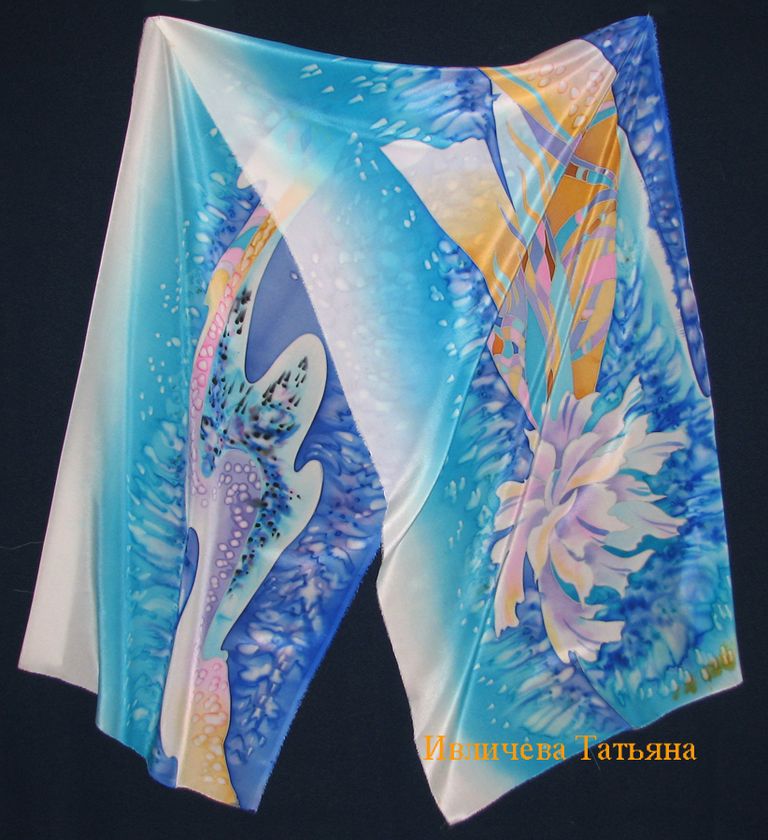 натуральный шелк (крепдешин) 90-90см, авторская ручная роспись 5000 руб.