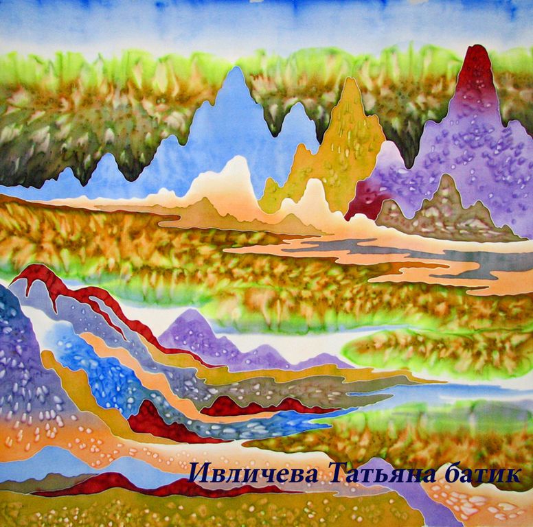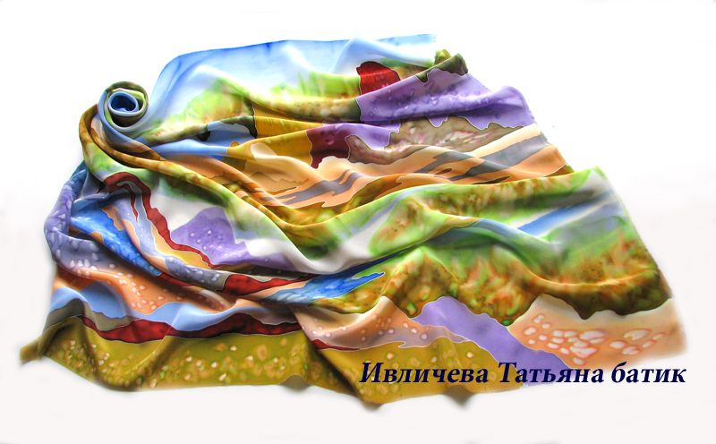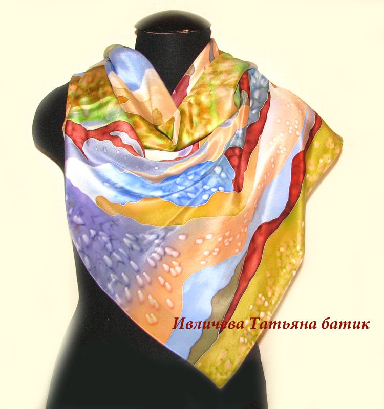 натуральный шелк (крепдешин) 90-90см, авторская ручная роспись 4500 руб.