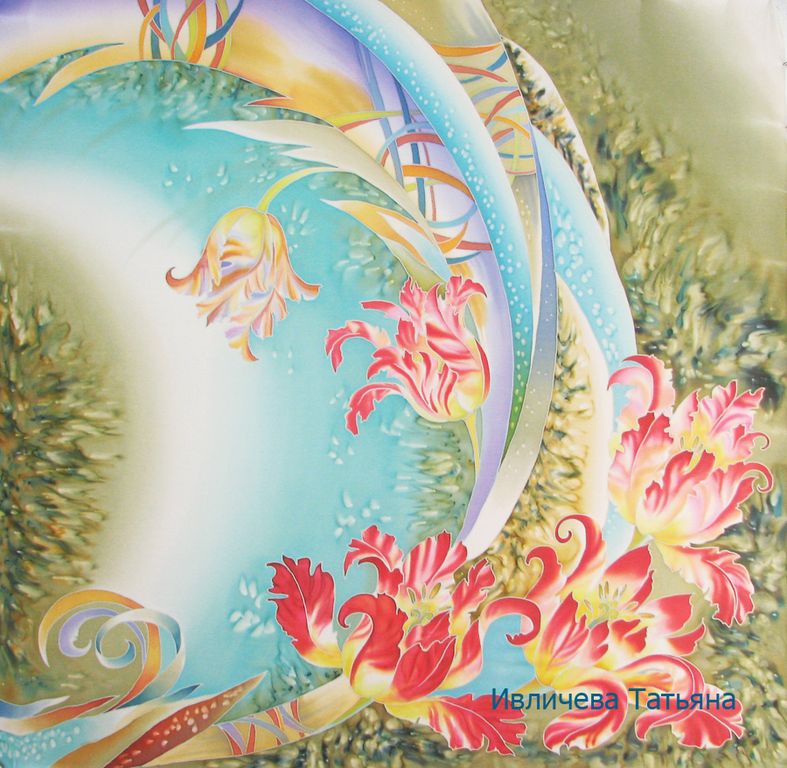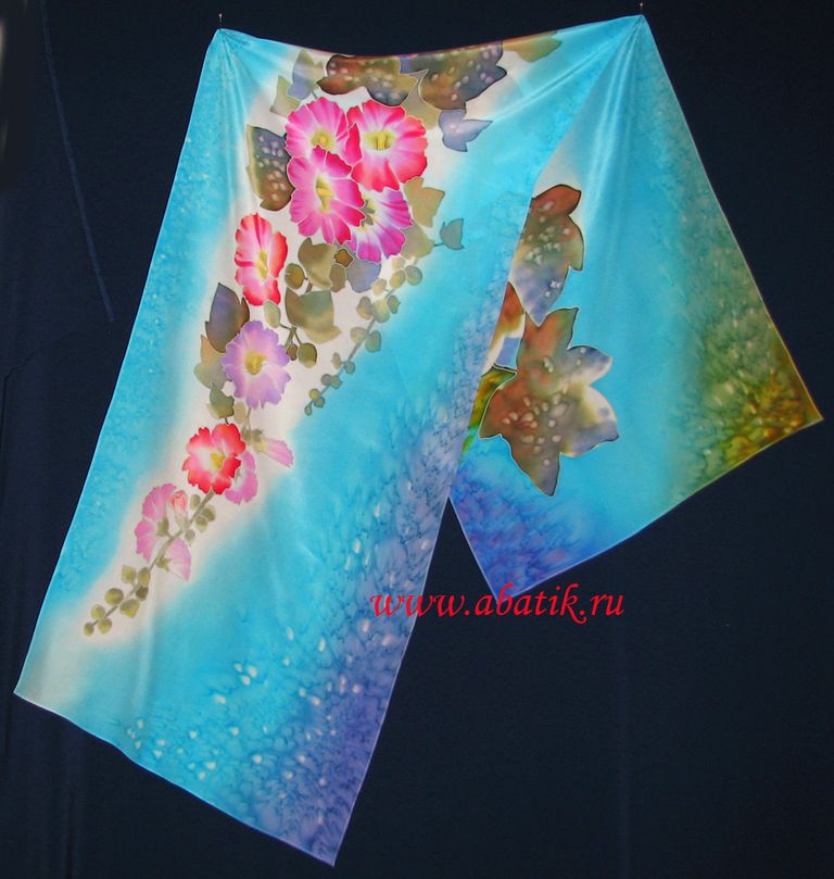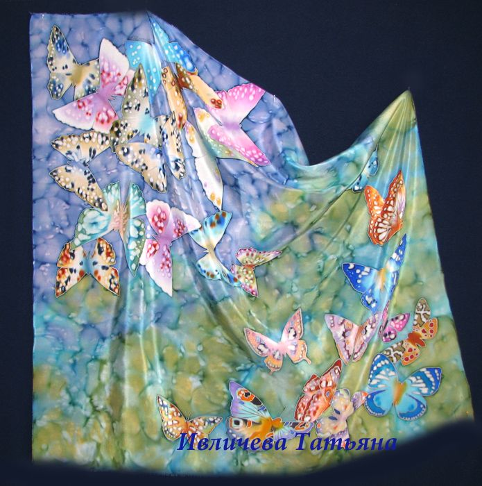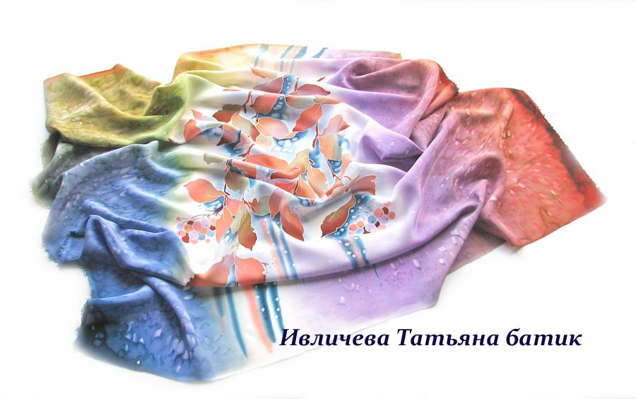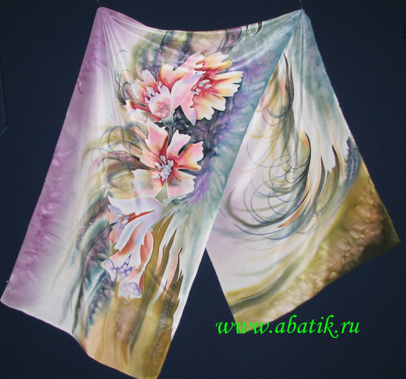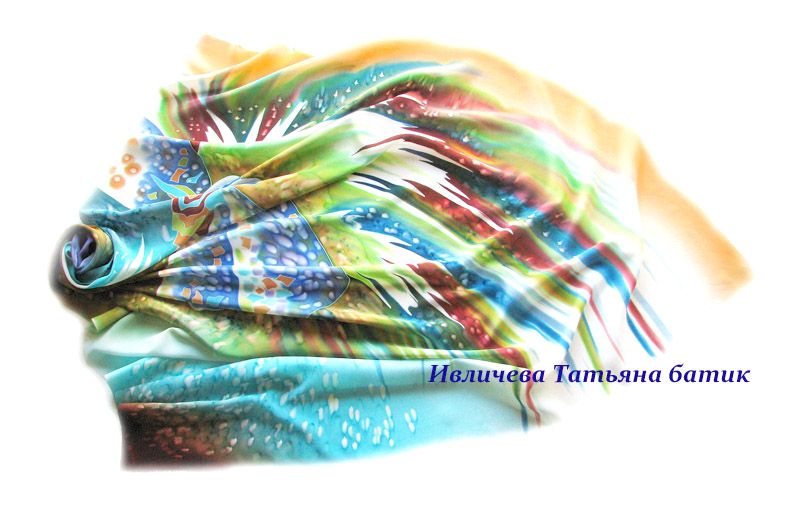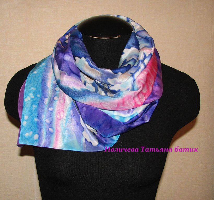 натуральный шелк (крепдешин) 90-90см, авторская ручная роспись 4500 руб.