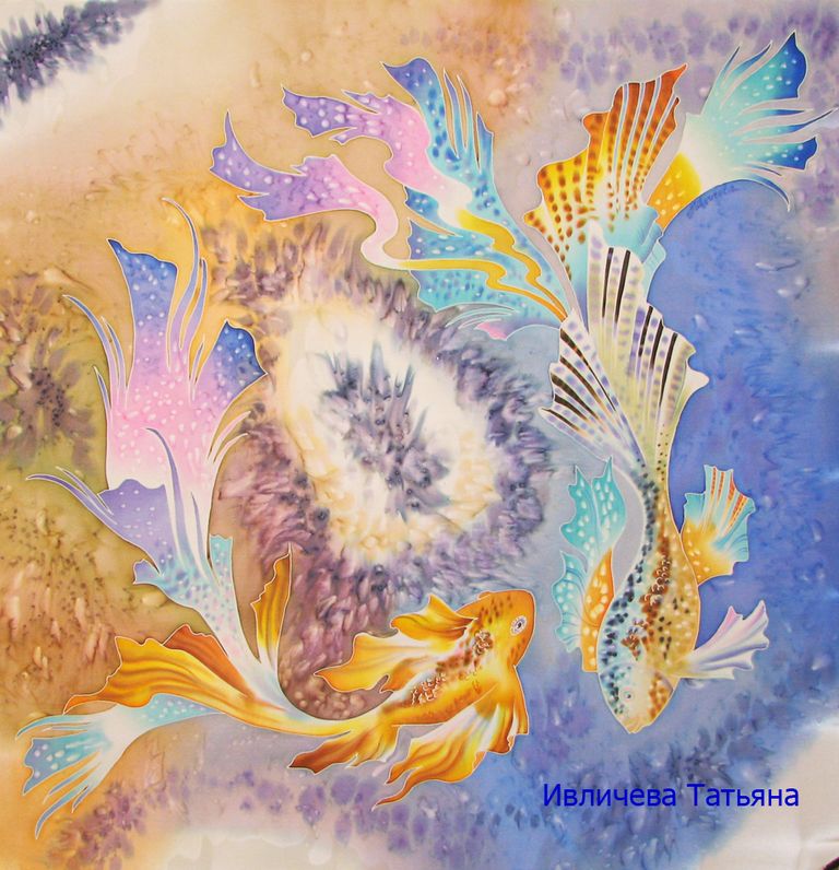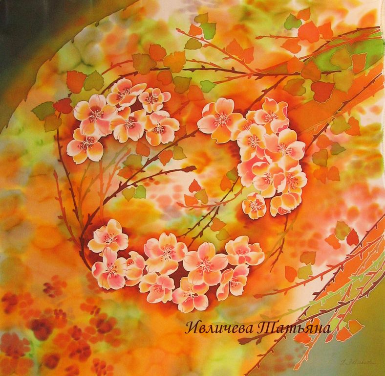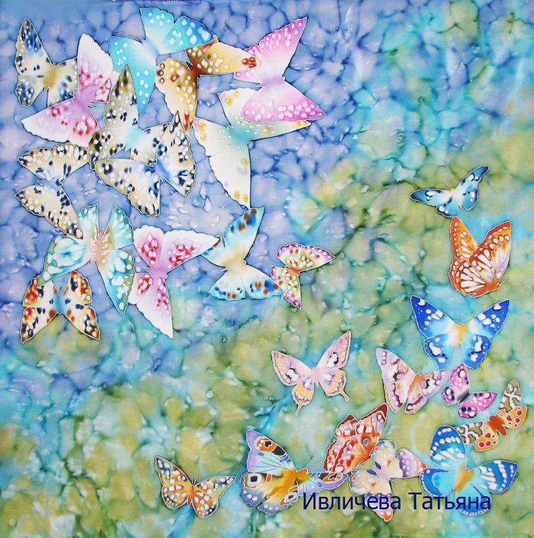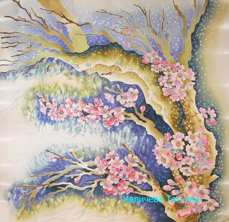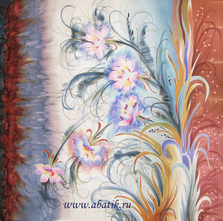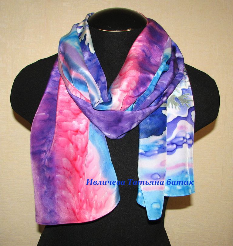натуральный шелк (крепдешин) 90-90см, авторская ручная роспись 4500 руб.