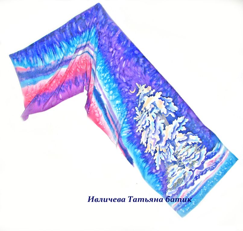 Натуральный шёлк (крепдешин), 42-165 см, авторская роспись 4800 руб.