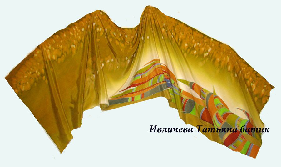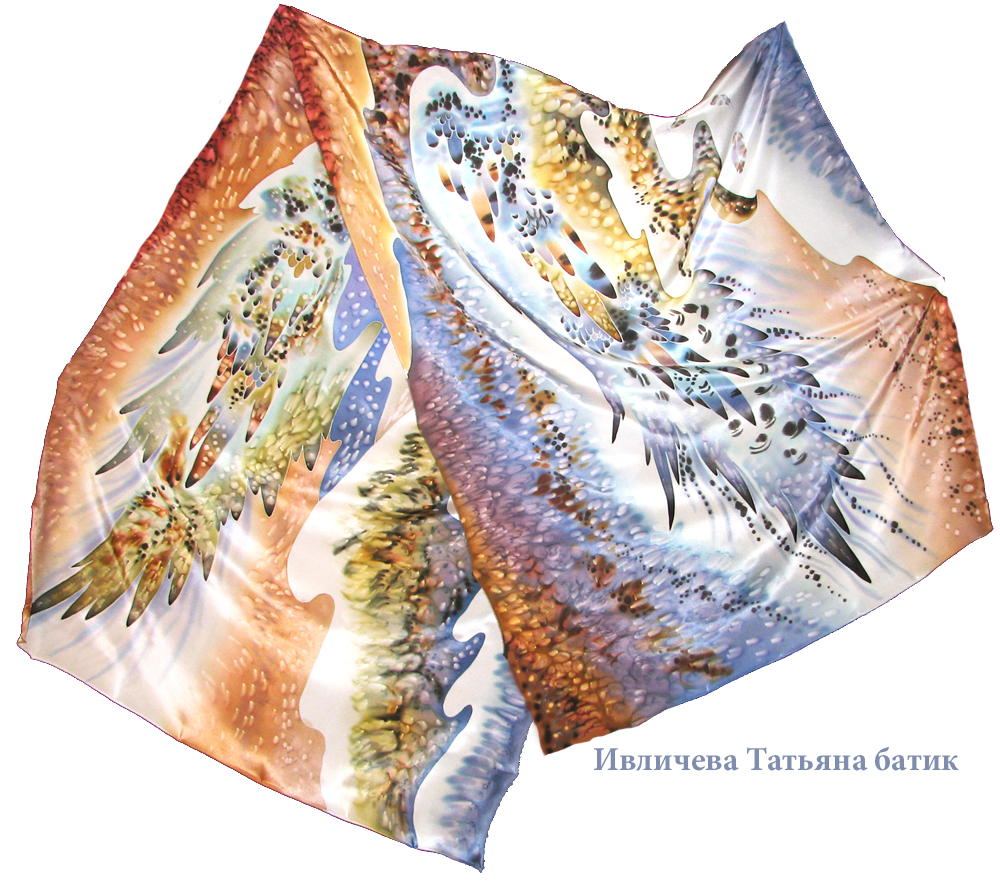 Натуральный шёлк (крепдешин), 46-170 см, авторская роспись.