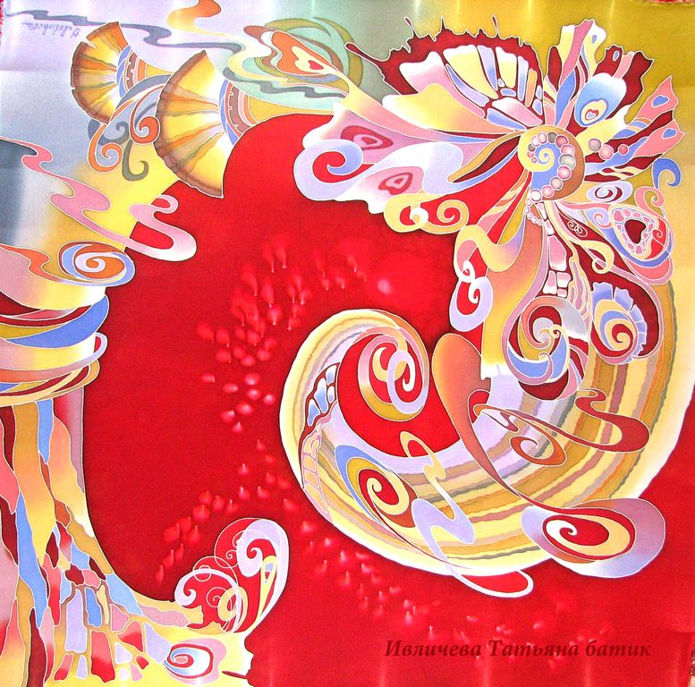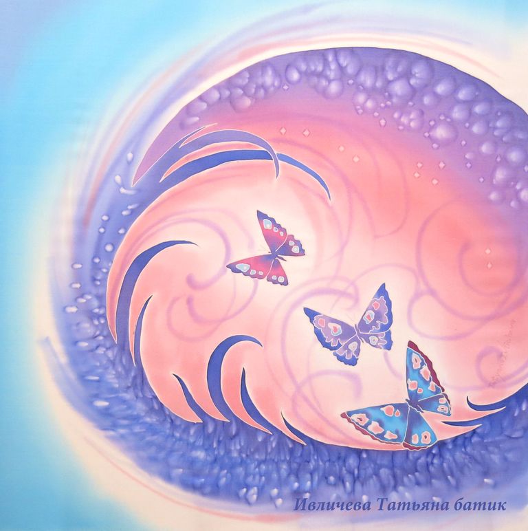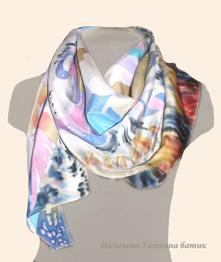 Натуральный шелк (крепдешин) 90-90см, авторская ручная роспись 28000 рублей.
