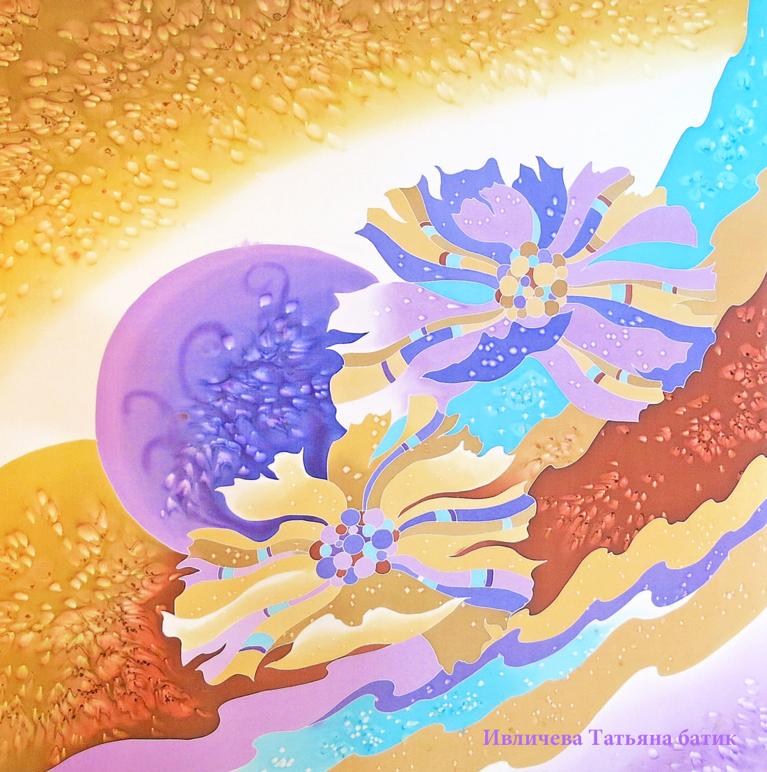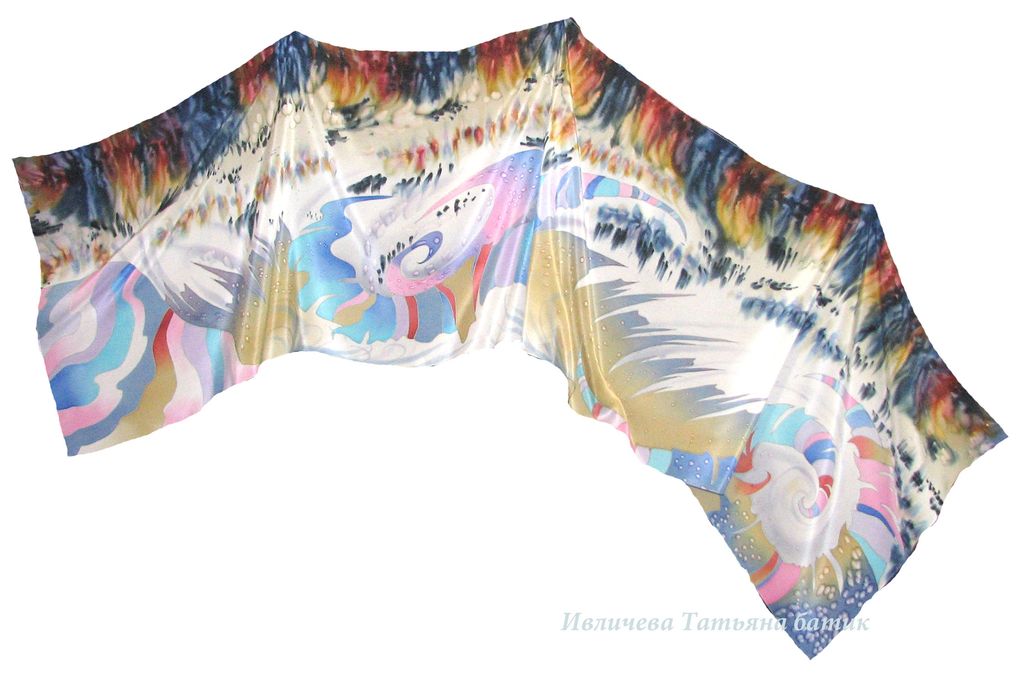 Натуральный шелк (крепдешин) 90-90см, авторская ручная роспись.