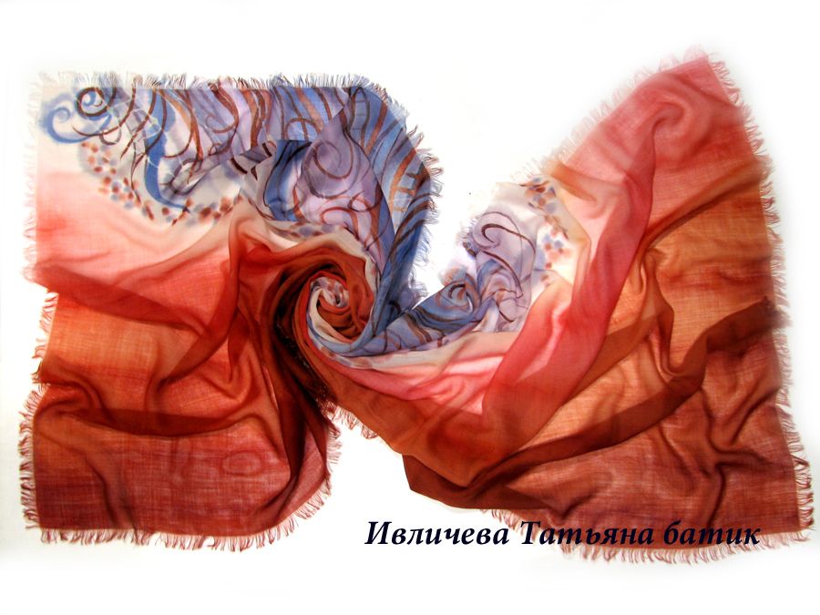натуральный шелк (шифон) 190-70 см, авторская ручная роспись.