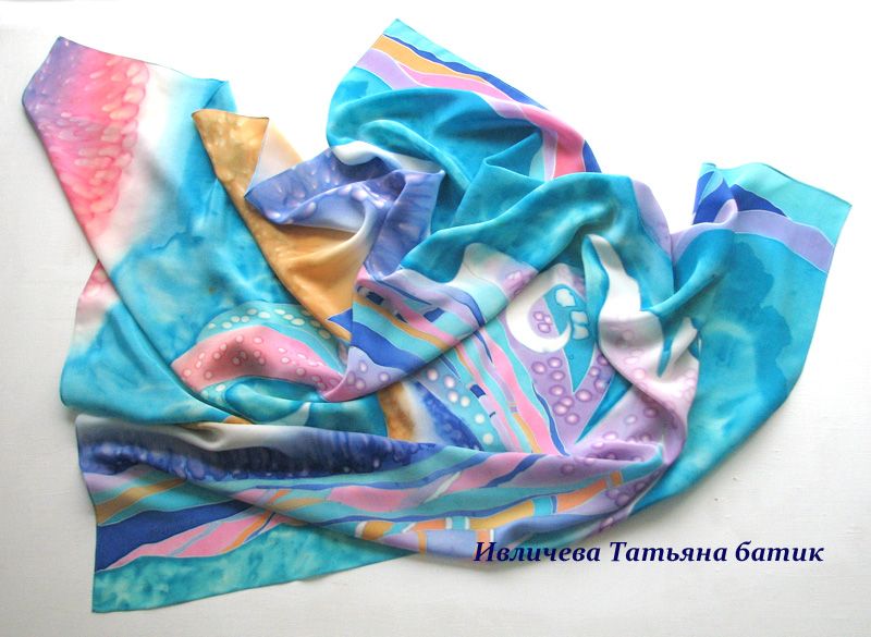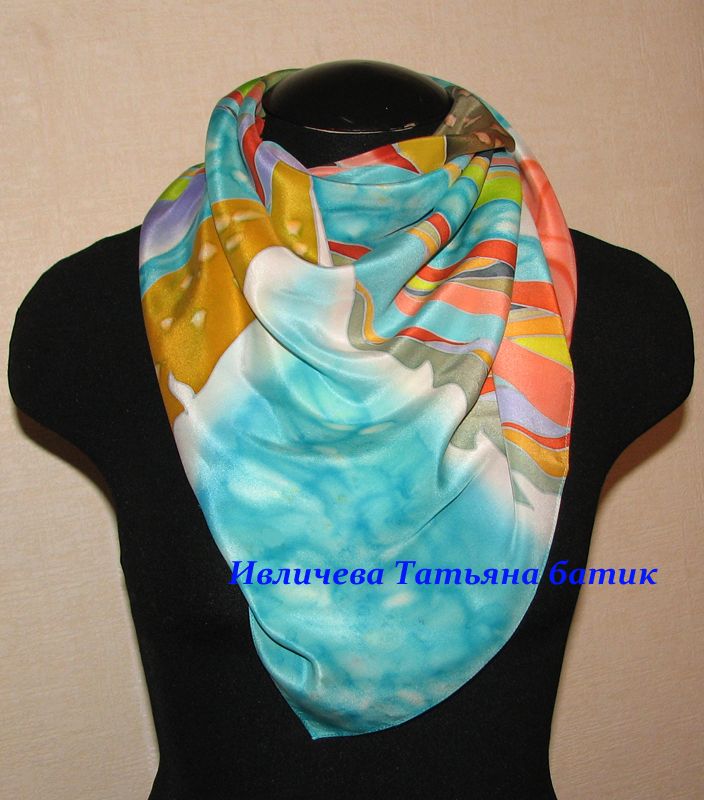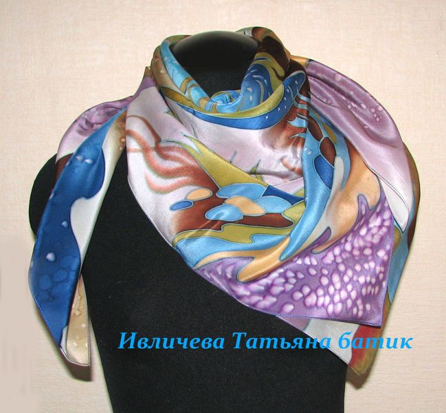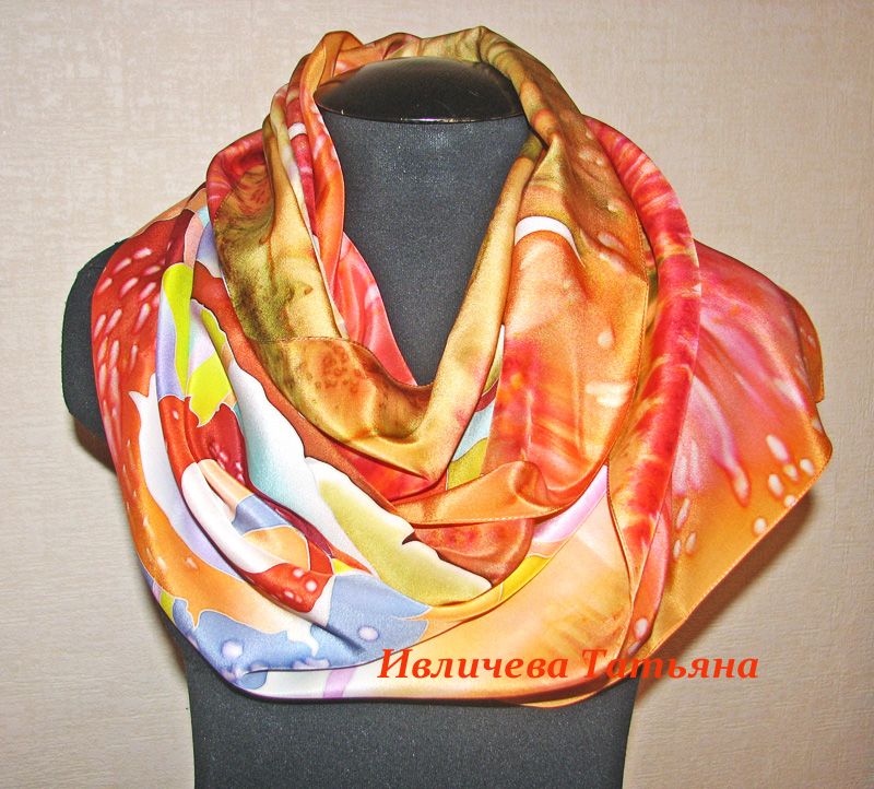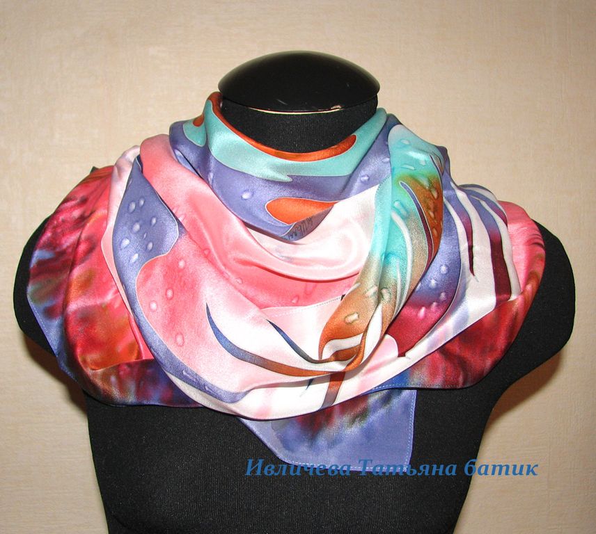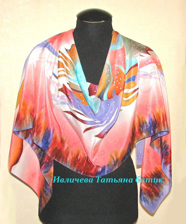 натуральный шелк (крепдешин) 90-90см, авторская ручная роспись 4500 руб.