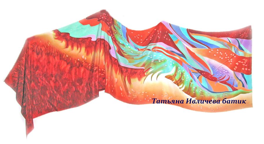 Натуральный шёлк (крепдешин), 41-162 см, авторская роспись.