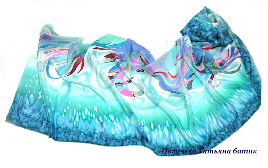 натуральный шелк (шифон) 70-180 см, авторская ручная роспись.