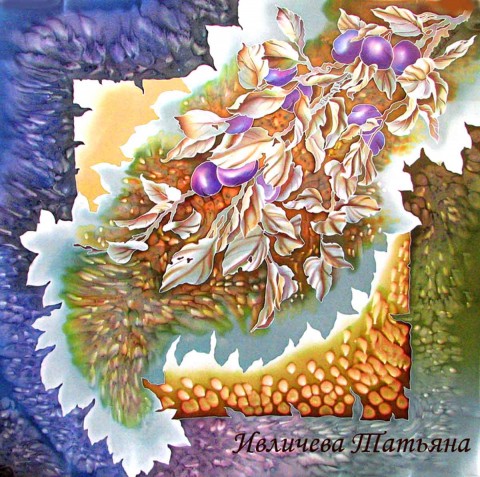 Платок батик "Сливы" ручной работы- это произведение искусства.