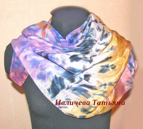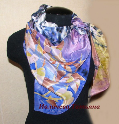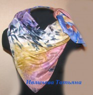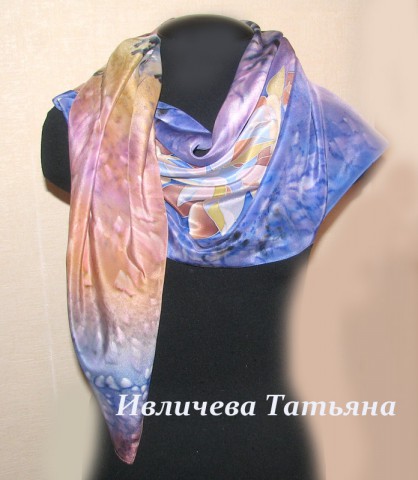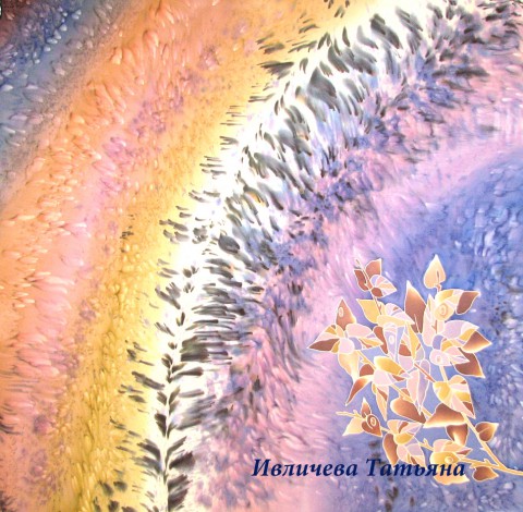 Батик платок, очень красивых, сиреневых, бежевых оттенков.