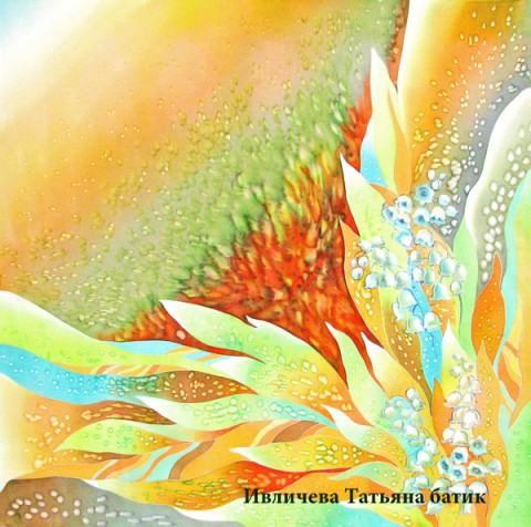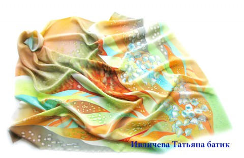 батик шелковый платок "Ландыши весны"