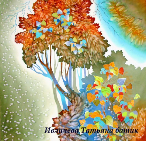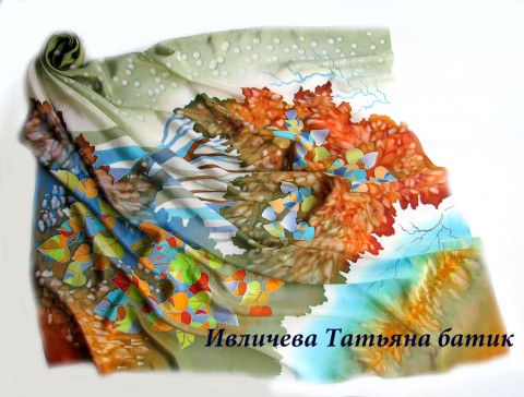 батик шелковый платок "Осень"