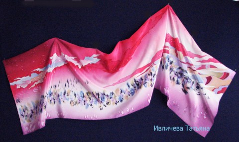 Яркий, оригинальный шарф. Подарок женщине.Подарок подруге. Шарфы в СПБ. Ручная роспись по натуральному шёлку. Авторская работа. Единственный экземпляр. Батик шарф прекрасный подарок женщине. Доставка по России. тел. 8 921 791 72 62