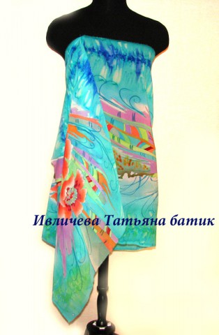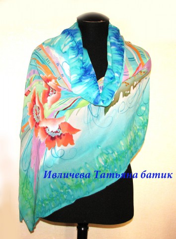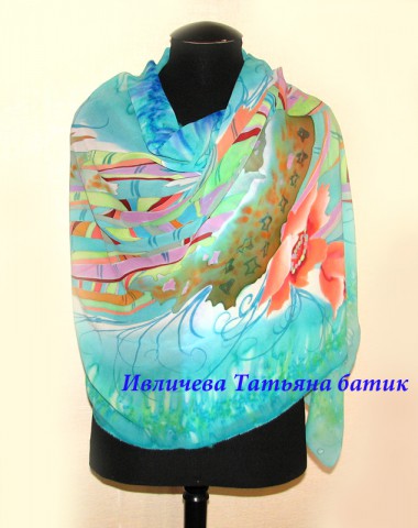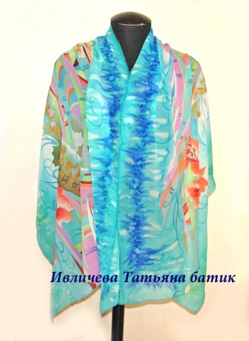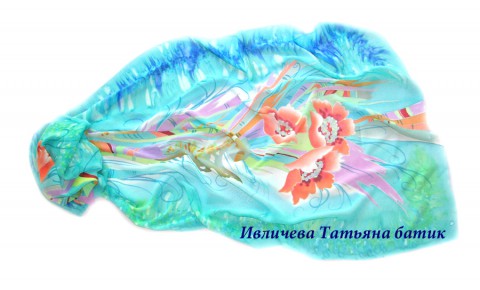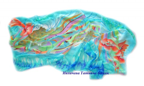 палантин шелковый батик "Мелодия лета"
