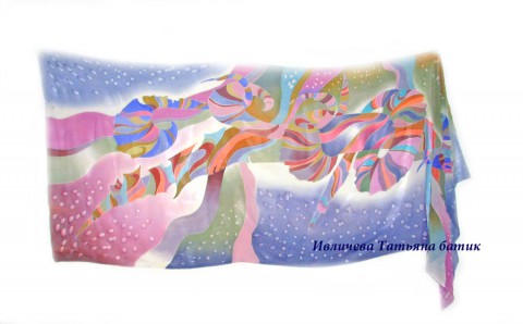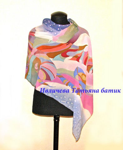 палантин шелковый батик "Тонкие грани"