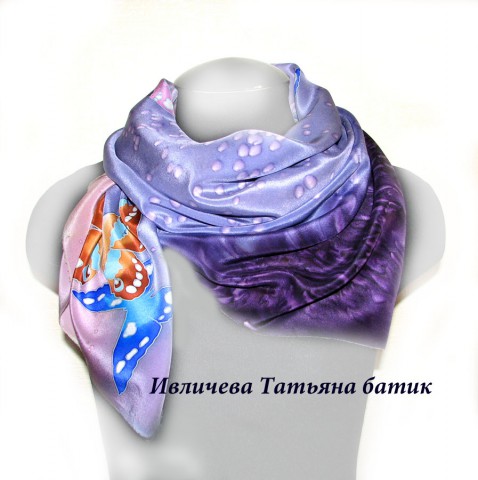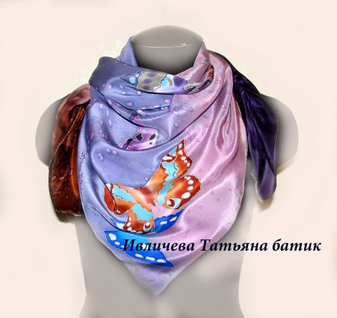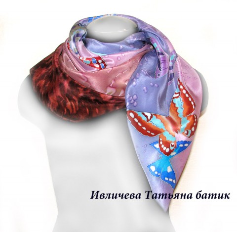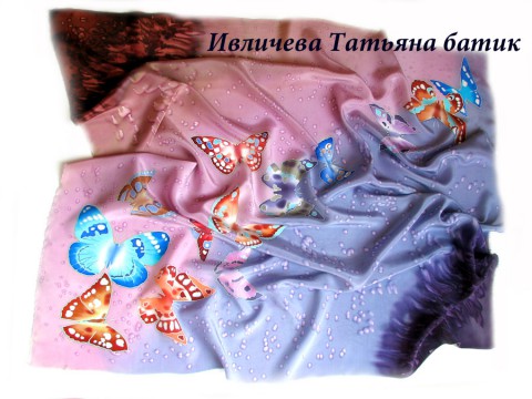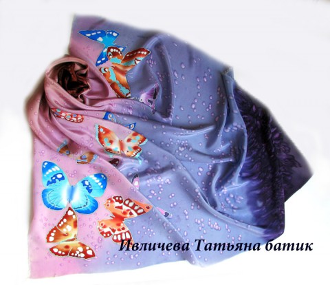 платок шелковый батик "Бабочки"