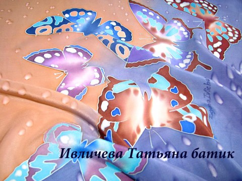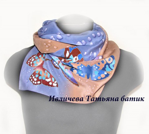 платок шелковый батик "Бабочки"