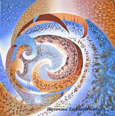 платок шелковый батик "Метелица" (тёплый, зимний)