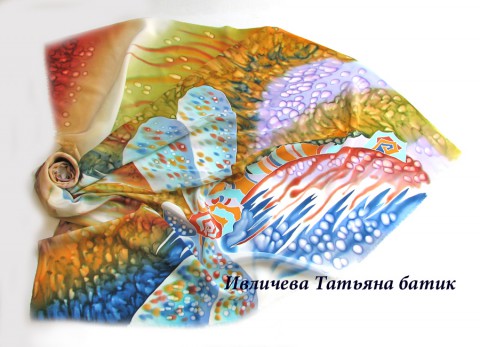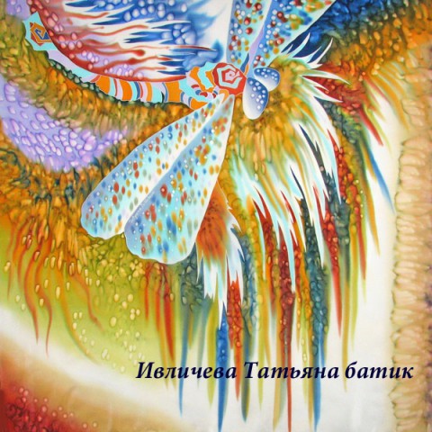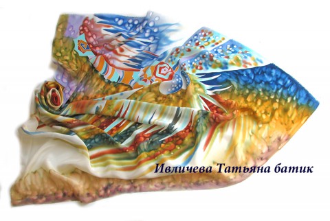 платок шелковый батик "Стрекоза"