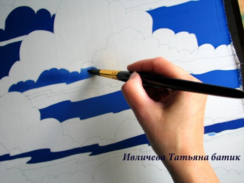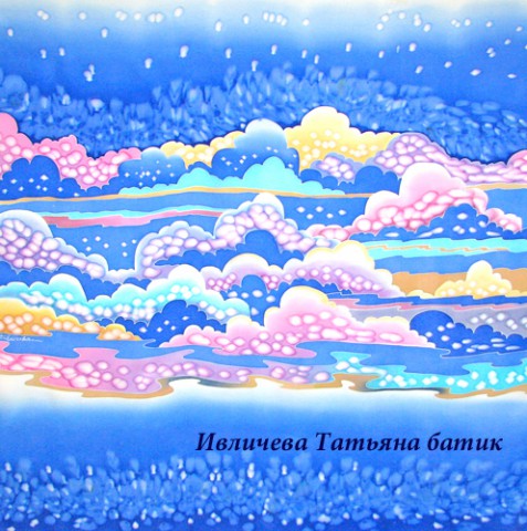 шелковый платок батик "Там за облаками..."