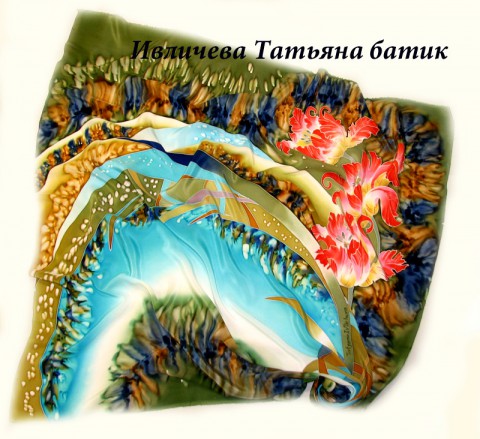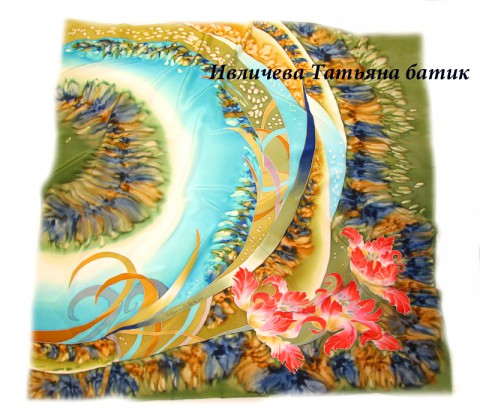Шелковый платок батик "Тюльпаны"