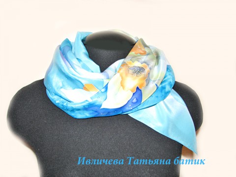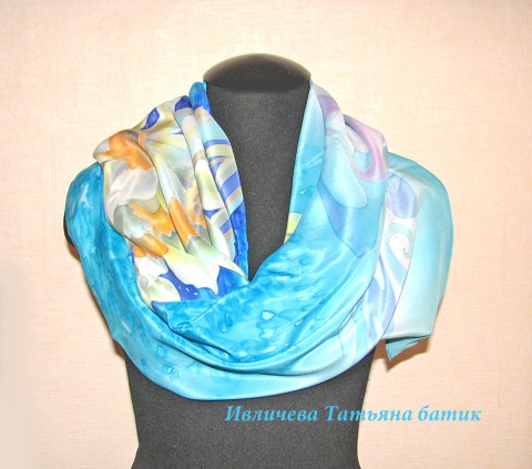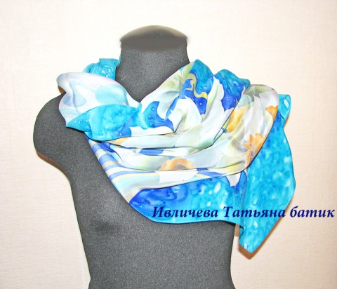 Шелковый платок батик "Ветер весны", расписан на натуральном шелке отличного качества, мягким, струящимся, с легким перламутровым блеском.