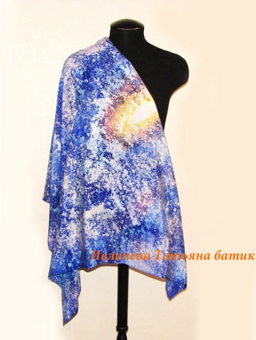 шелковый платок-шаль батик "Галактика"