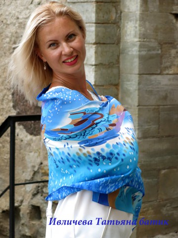 У нас вы можете купить шелковый шарф, в подарок, батик "Голубой бриз" – это элегантное дополнение к образу роковой красотки или стильной бизнес-леди. Ничто не вызовет такой восторг у любой истинной леди, как шелковый шарф от известного художника. Шелковые платки и шарфы, ручной росписи – это ваш лучший выбор для подарка жене, маме, подруге, коллеге, партнеру по бизнесу, по любому поводу.