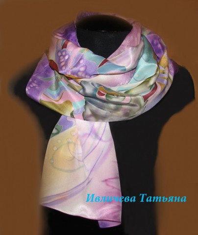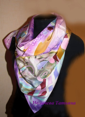 шелковый шарф батик "Линии фантазий"