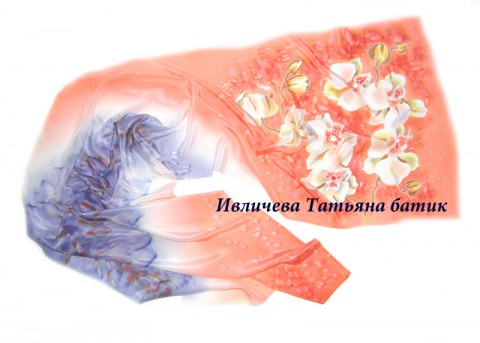 шелковый шарф батик "Орхидеи"