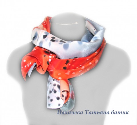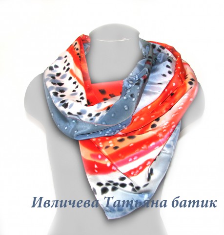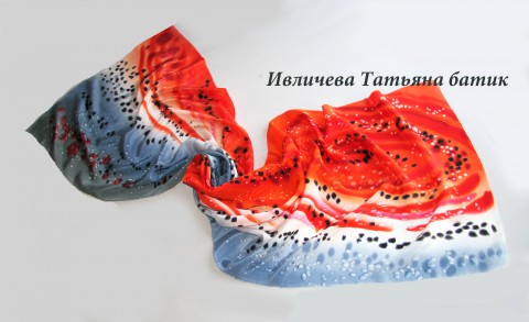 Яркий, шелковый шарф батик. "Стихия огня". Красные цвета огня играют и переливаются на шелке великолепного качества. как языки пламени играют на ветру. Гамма красных цветов шарфа для смелых, активных женщин! Жизнерадостные это для ВАС!!! Энергия шарфа несет бодрость, энтузиазм, притягивает внимание, завораживает. Делает ваш образ незабываемым. Хорошо сочетается с другими цветами вашего гардероба.