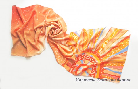 Шелковый шарф батик "Веcенние лучики".