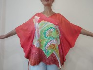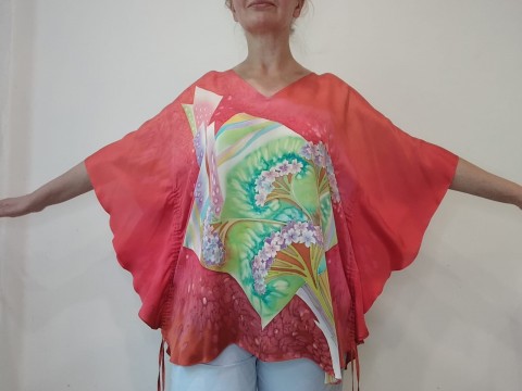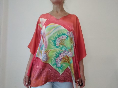 Батик туника "Флоксы", авторская работа, единственный экземпляр, размер 46-50,с завязками по боковым швам.