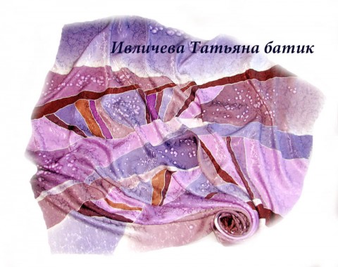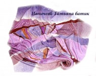 Tёплый шелковый платок батик "Cиреневая карамель"